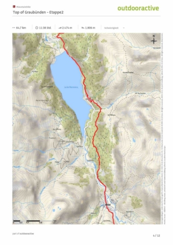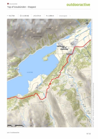 Roadbook: Von Savognin geht es auf einem Forstweg parallel zur Julierpassstrasse talaufwärts. Nach längerem Anstieg folgt unterhalb der Alp Flix eine erste kurze Abfahrt. Vorbei am Marmorera See erreichst du Bivio. Hier verzweigen sich Julier und Septimer. Weiter geht’s über den Septimerpass, die Auffahrt ist Teilweise recht steil jedoch gut fahrbar. Die Abfahrt hinab nach Casaccia ist anspruchsvoll aber für technisch versierte Fahrer gut machbar. Über alte Steinplatten führt der noch fast gänzlich intakte Römerweg hinab ins Tal. Kurz oberhalb Casaccia biegst du zur alten Ruine der Hospizkirche ab und fährst weiter auf der Hauptstrasse zum Malojapass. Nun geht es an den Seen durchs Hochtal Richtung St.Moritz und zum Etappenziel nach Pontresina.